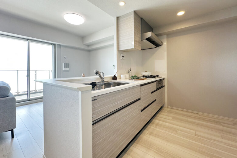室内設備は、梅雨時に嬉しい浴室暖房乾燥機付!便利なディスポーザー付きのシステムカウンターキッチン!