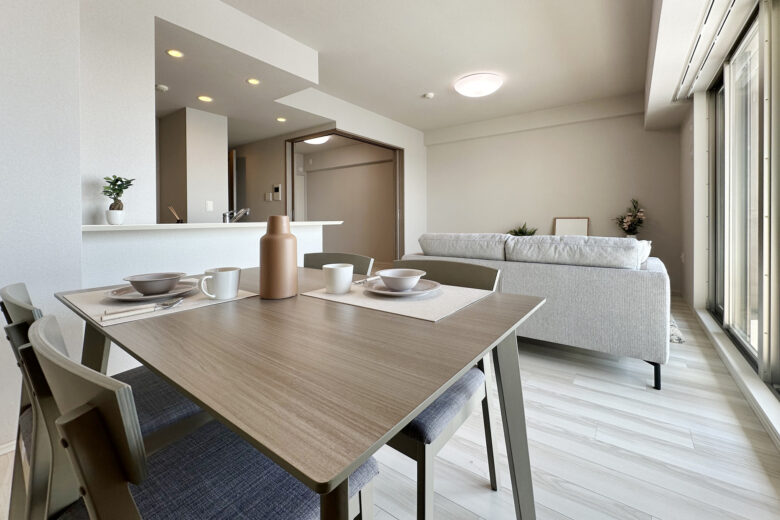 リノベーション内容 | 浴室:鏡・水栓・シャワーホース・シャワーヘッド交換 / 洗面化粧台:水栓交換 / キッチン:水栓・グリル交換 / キッチンシンク研磨コーティング / トイレ交換 / クロス貼替 / フロアタイル一部貼替(トイレ/洗面室) / 新規シーリング照明一部設置(LD/洋室1/洋室2/洋室3) / ハウスクリーニング 等(2025年7月下旬 完成) |