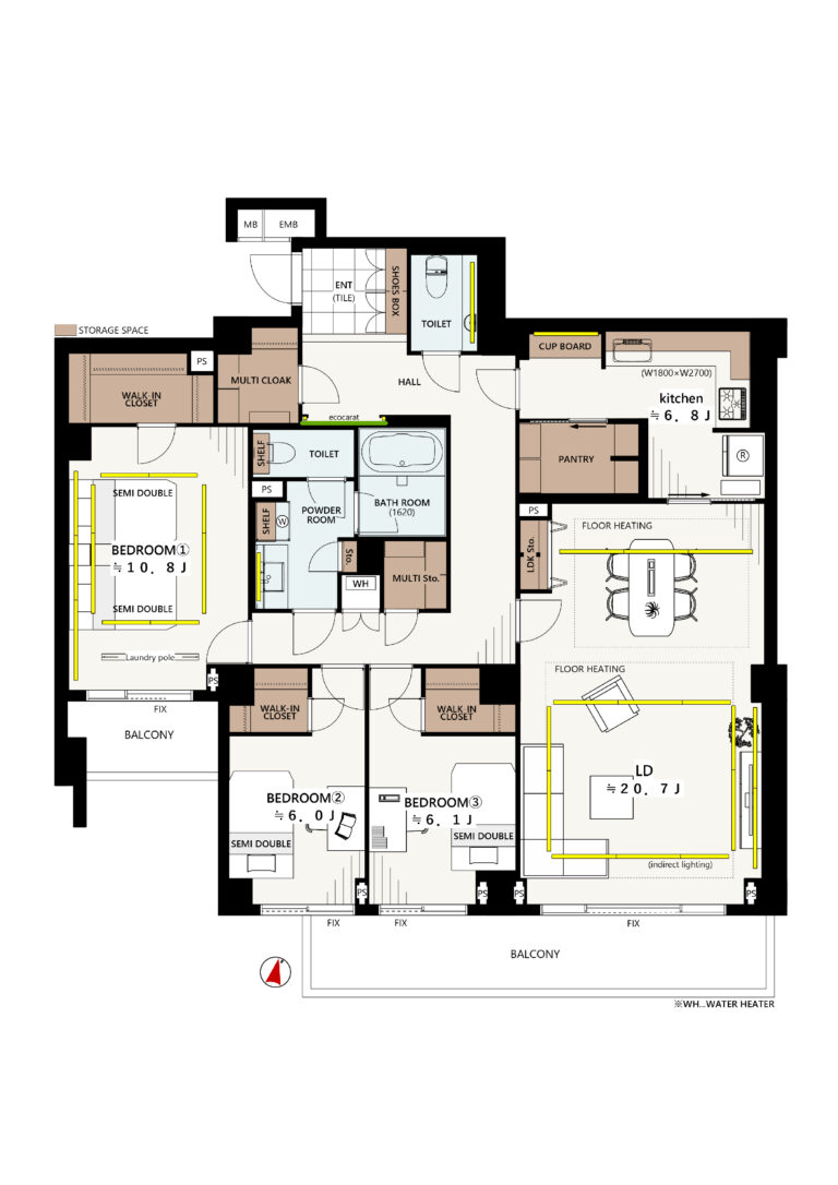 - LD20帖以上、各洋室6帖以上確保で広々とした居住空間