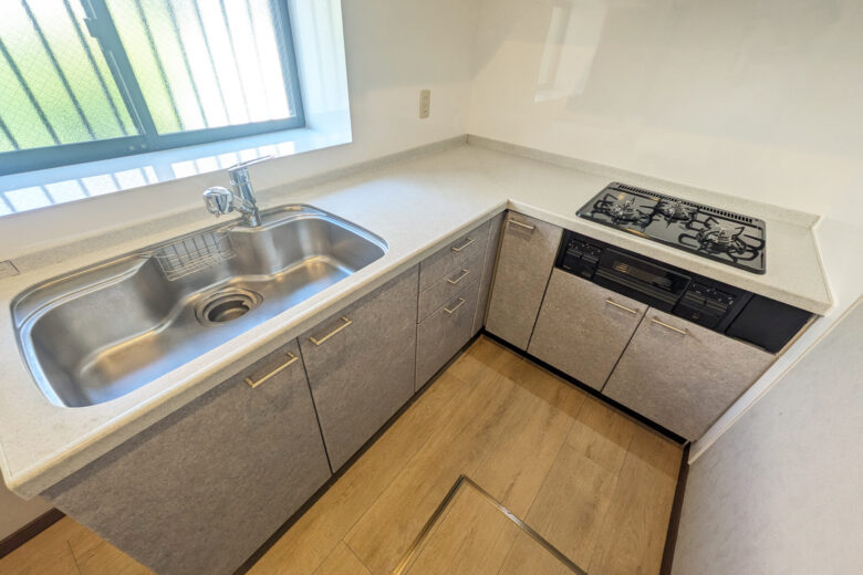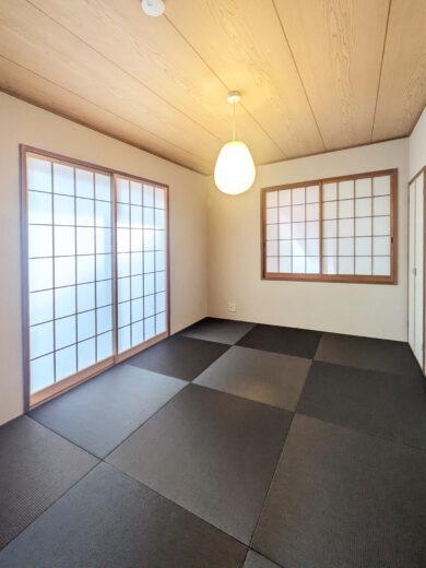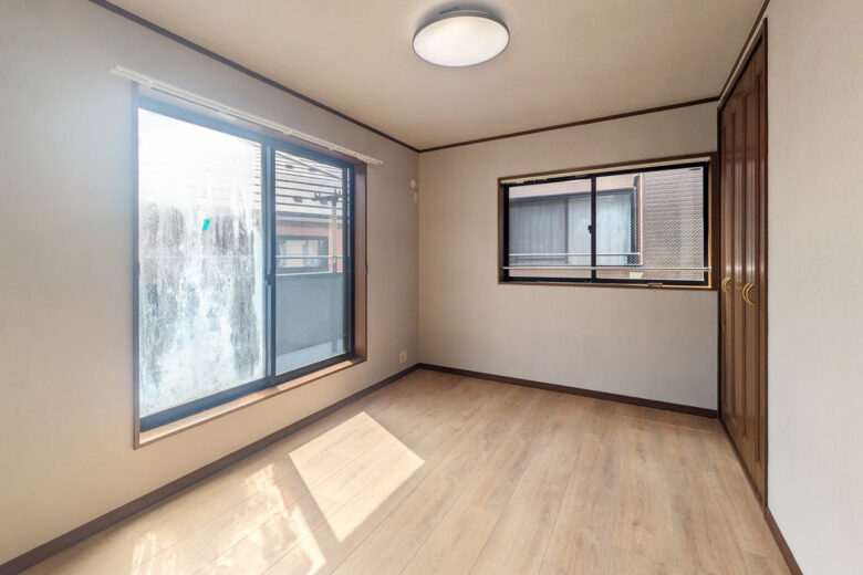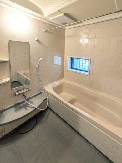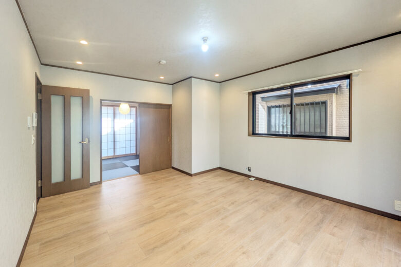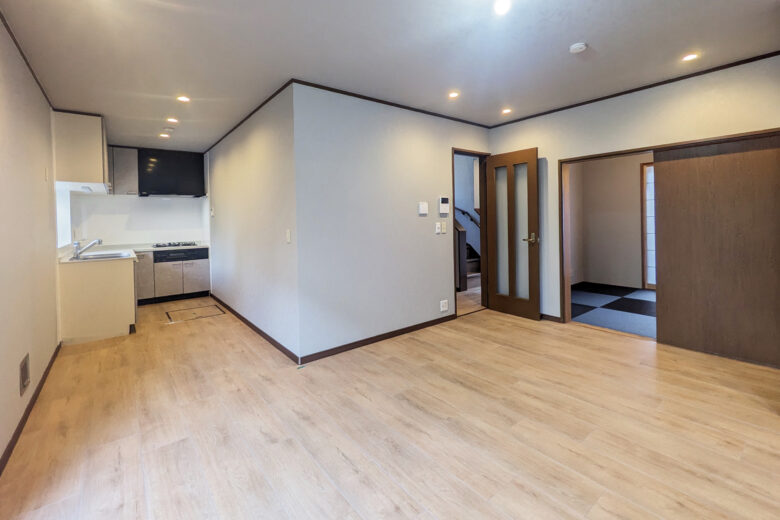 リノベーション内容 | 洗面化粧台交換 / 給湯器交換(追焚付) / トイレ交換 / 照明器具交換 / クッションフロア貼替 / クロス一部貼替 / フロアタイル一部上貼 / 障子・襖貼替 / ハウスクリーニング 等(2025年8月上旬 完成) |