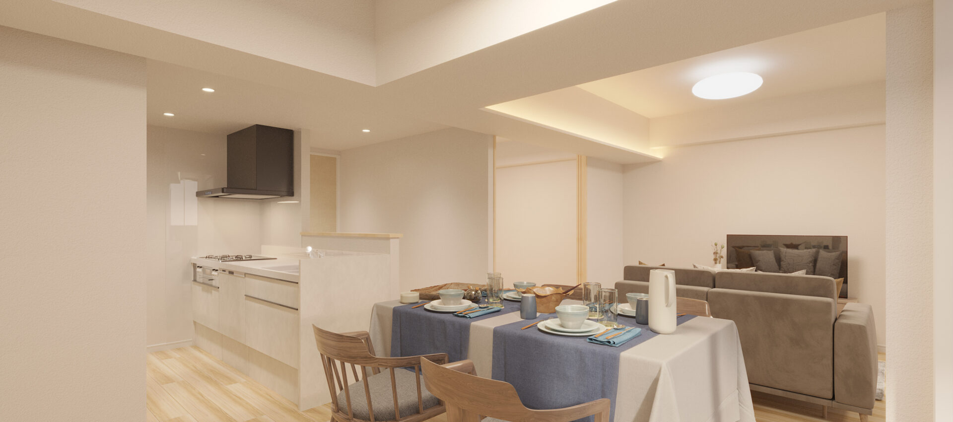 - 家族が自然と集まる、20帖のゆったりリビング