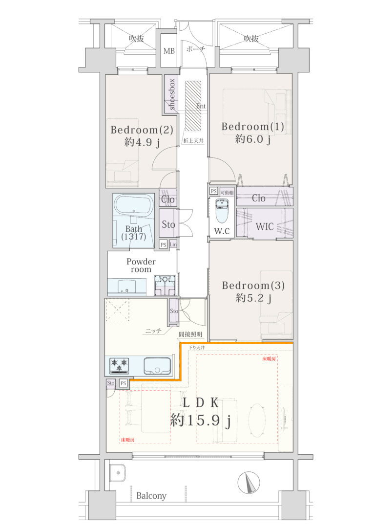 | 間取り(専有面積) | 3LDK+WIC(72.00㎡) |