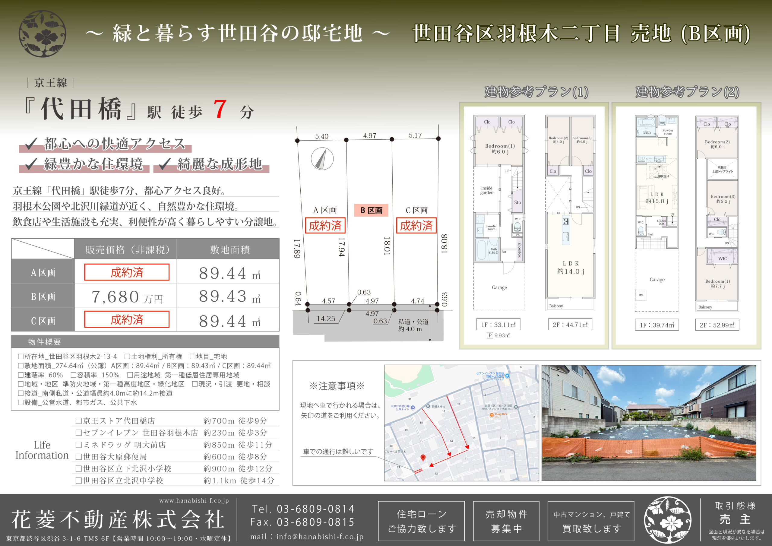 物件名 世田谷区羽根木二丁目 売地 (B区画)