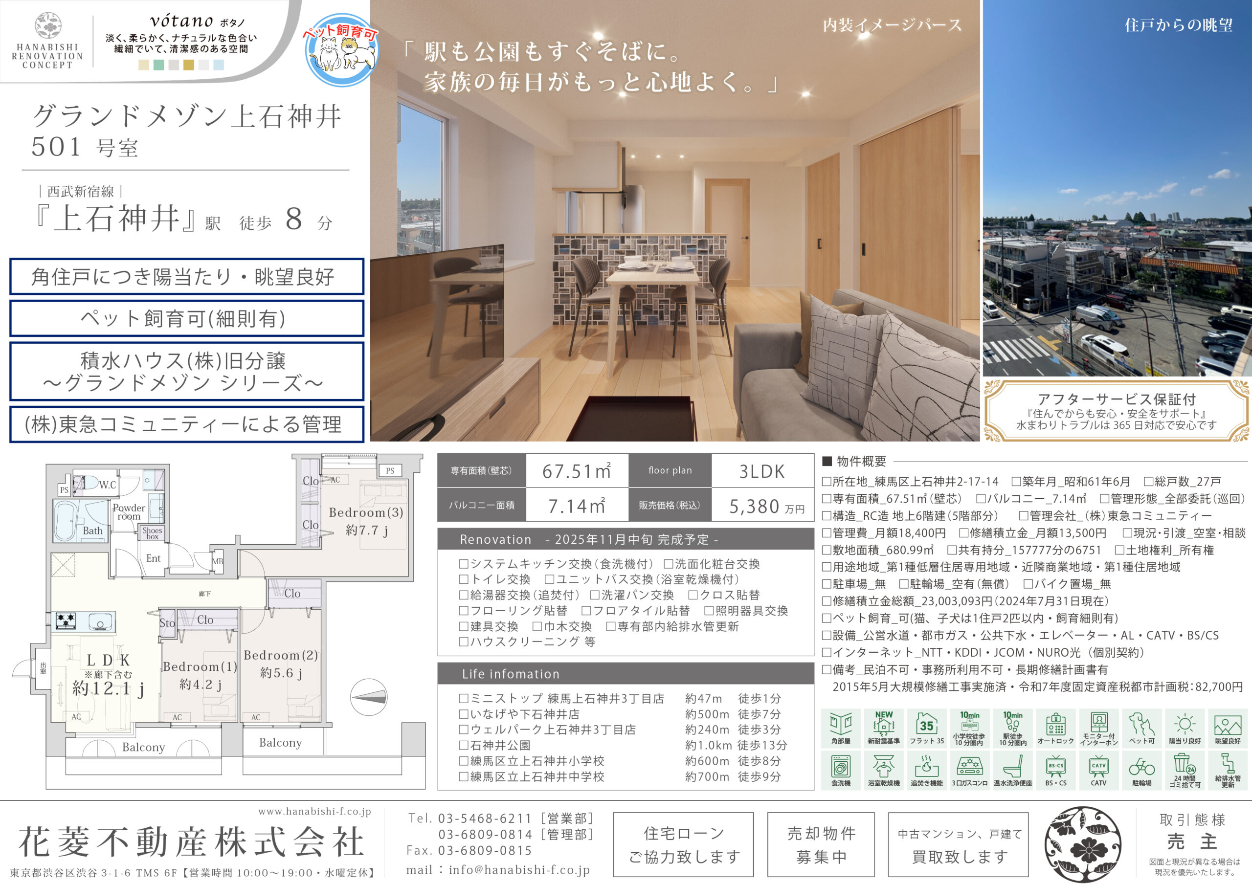 ペット可 眺望良好 陽当り良好 角部屋 フルリノベーション