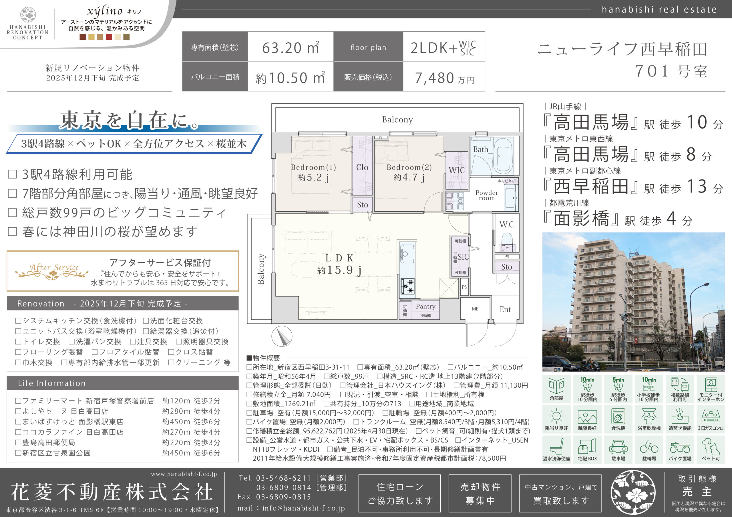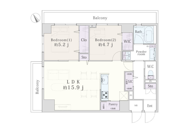 間取り(専有面積) | 2LDK+WIC+SIC(63.20㎡) |
