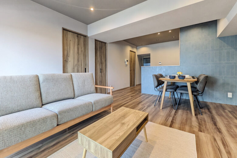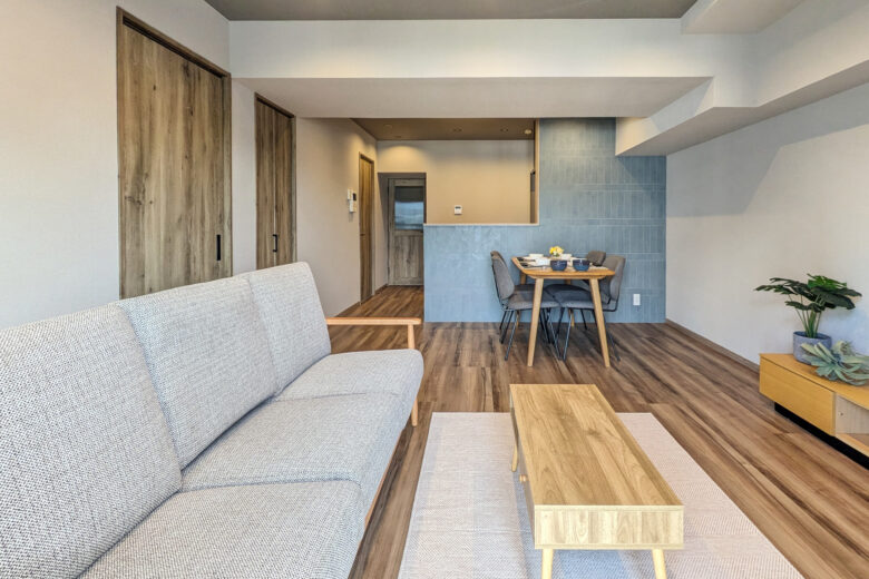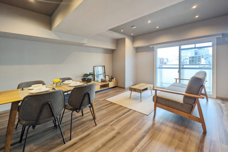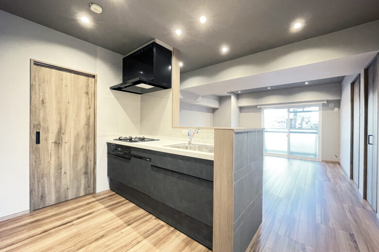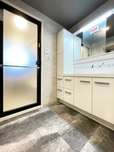 | リノベーション内容 | システムキッチン交換(食洗機付) / 洗面化粧台交換 / ユニットバス交換(浴室乾燥機付) / 給湯器交換(追焚付) / トイレ交換 / 洗濯パン交換 / 建具交換 / 照明器具交換 / フローリング張替 / フロアタイル貼替 / クロス貼替 / 巾木交換 / 専有部内給排水管一部更新 / ハウスクリーニング 等 |