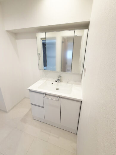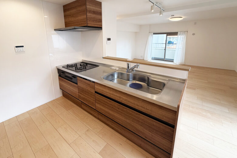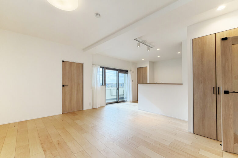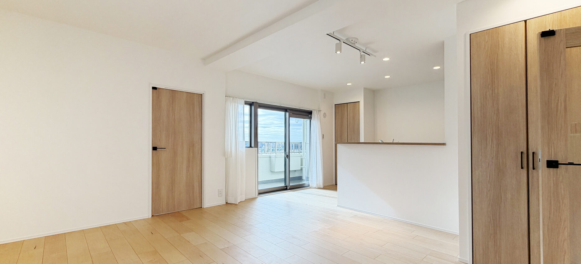 リノベーション内容 システムキッチン交換(食洗機付) / 洗面化粧台交換 / トイレ交換 / ユニットバス交換(浴室乾燥機付) / 給湯器交換(追焚付) / 洗濯パン交換 / 建具交換 / 照明器具交換 / フローリング貼替 / フロアタイル貼替 / クロス貼替 / 専有部内給排水管更新 / ハウスクリーニング 等(2025年12月下旬 完成)