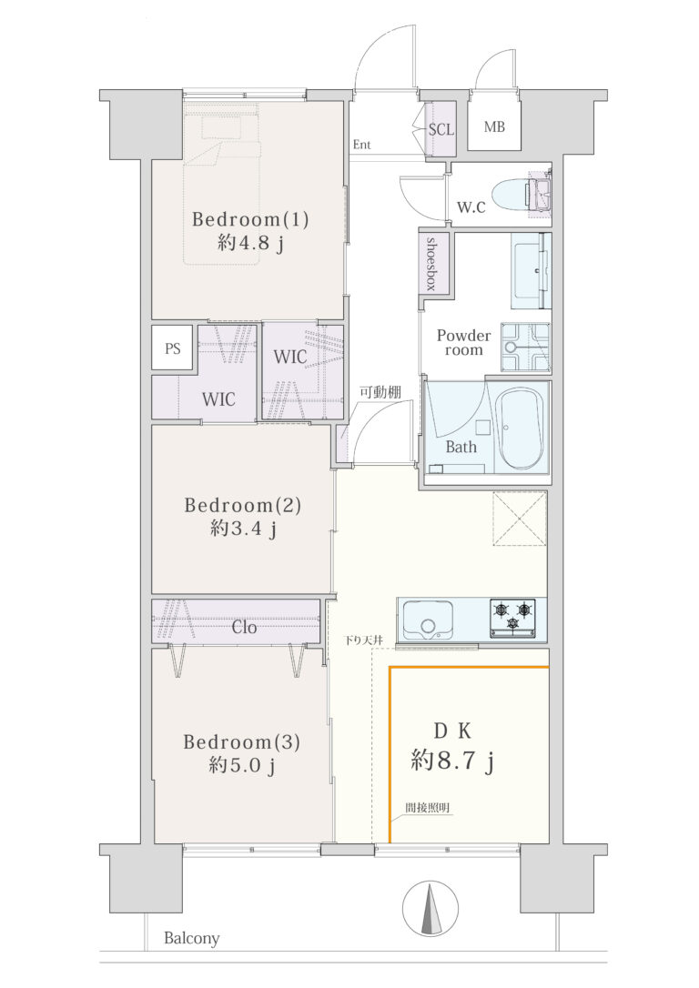 間取り(専有面積) 3DK+2WIC(54.00㎡)