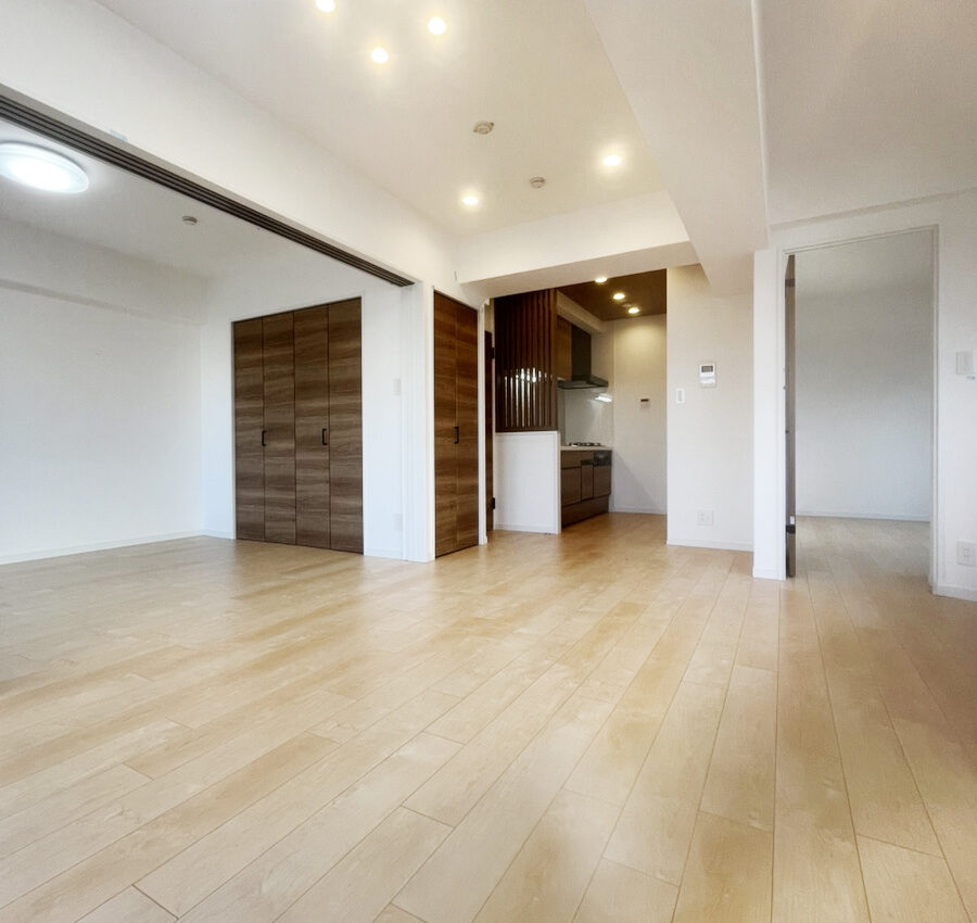 リノベーション内容 システムキッチン交換(食洗機付) / ユニットバス交換(浴室乾燥機付) / 給湯器交換(追焚付) / 洗面化粧台交換 / トイレ交換 / 洗濯パン交換 / フローリング貼替 / フロアタイル貼替 / クロス貼替 / 建具交換 / 照明器具交換  / 専有部内給排水管更新 / ハウスクリーニング 等(2025年12月下旬 完成)