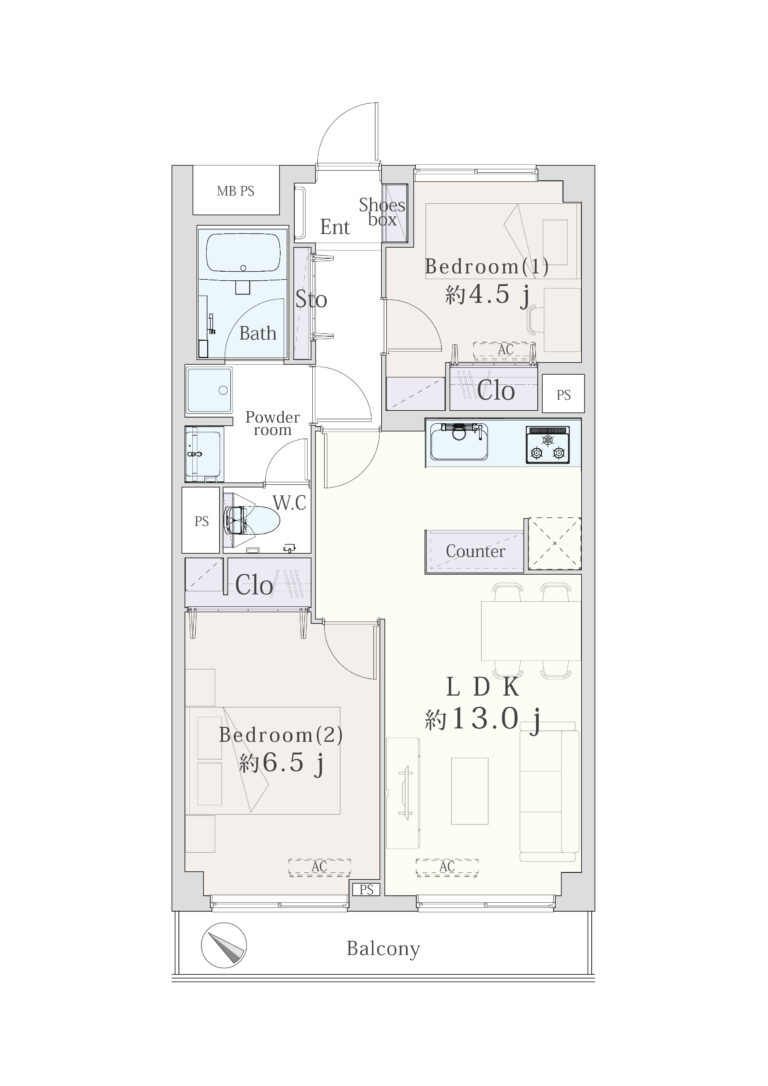 | 間取り(専有面積) | 2LDK(55.44㎡) |