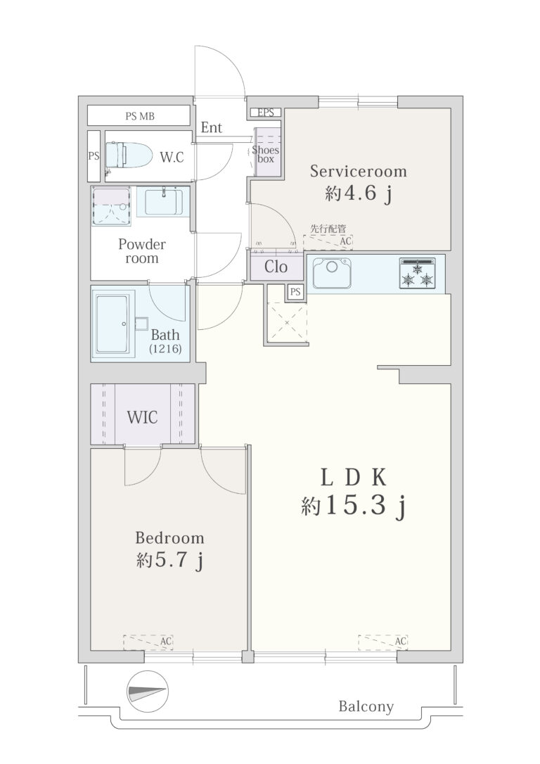 | 間取り(専有面積) | 1SLDK+WIC(57.66㎡) |
