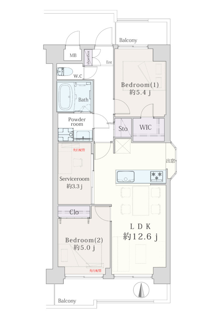 間取り(専有面積) 2SLDK+WIC(59.95㎡)