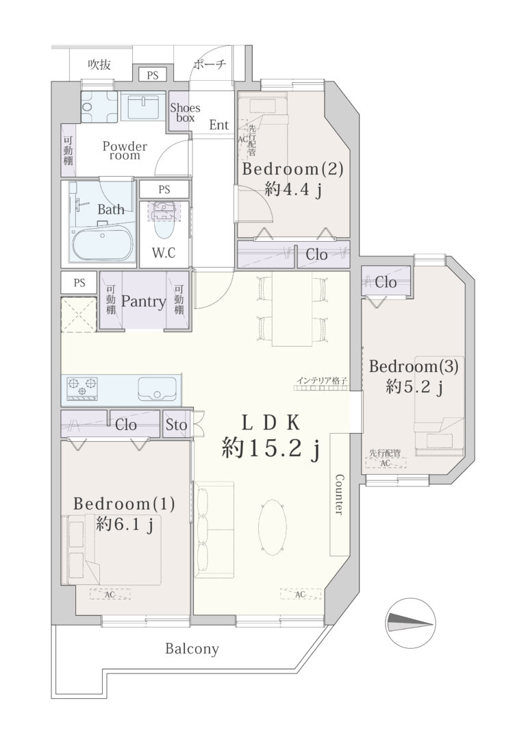 | 間取り(専有面積) | 3LDK+Pantry(73.84㎡) |