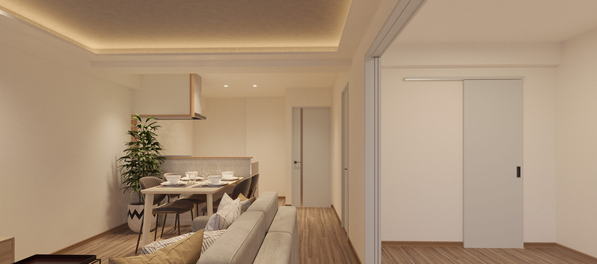 ニュートラルカラーの優雅さを纏った、上質で落ち着きのある内装