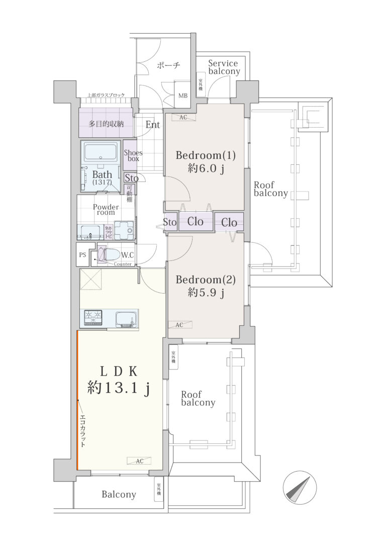 | 間取り(専有面積) | 2LDK(59.47㎡) |