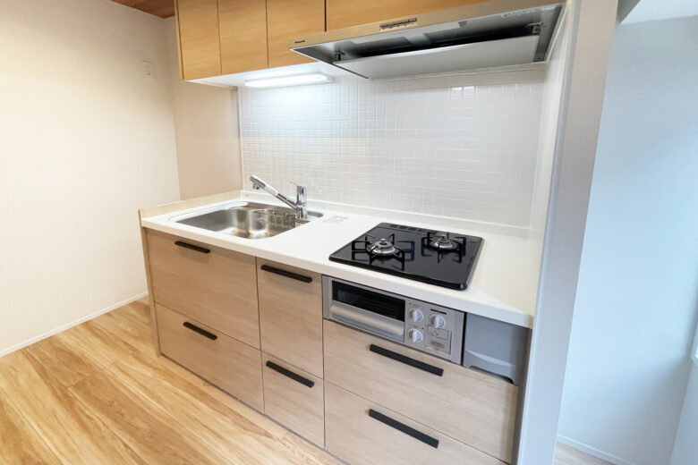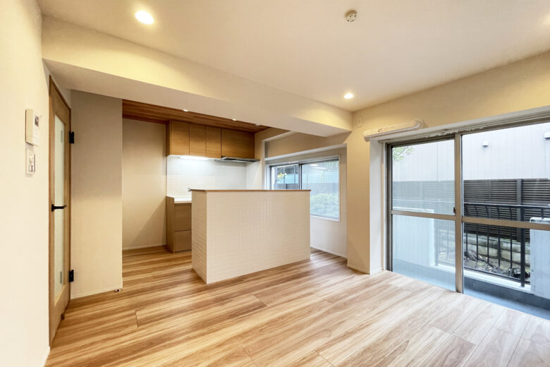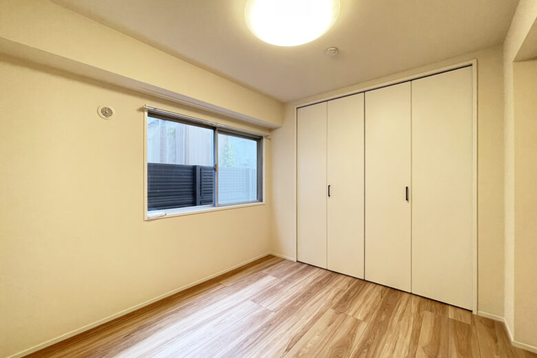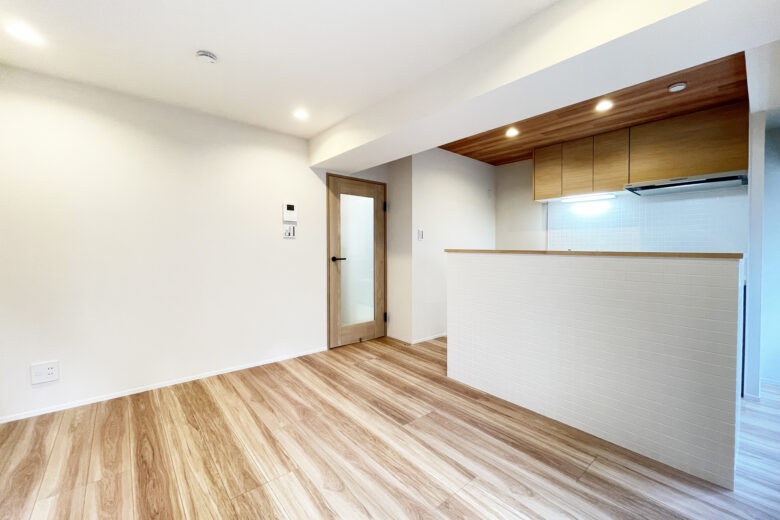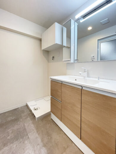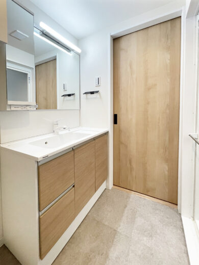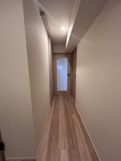 | リノベーション内容 | システムキッチン交換 / 洗面化粧台交換 / トイレ交換 / ユニットバス交換(1116サイズ・浴室乾燥機付) / 洗濯パン交換 / 照明器具交換 / 建具交換 / フローリング貼替 / フロアタイル貼替 / クロス貼替 / 専有部内給排水管更新 / ハウスクリーニング 等(2025年11月中旬 完成) |