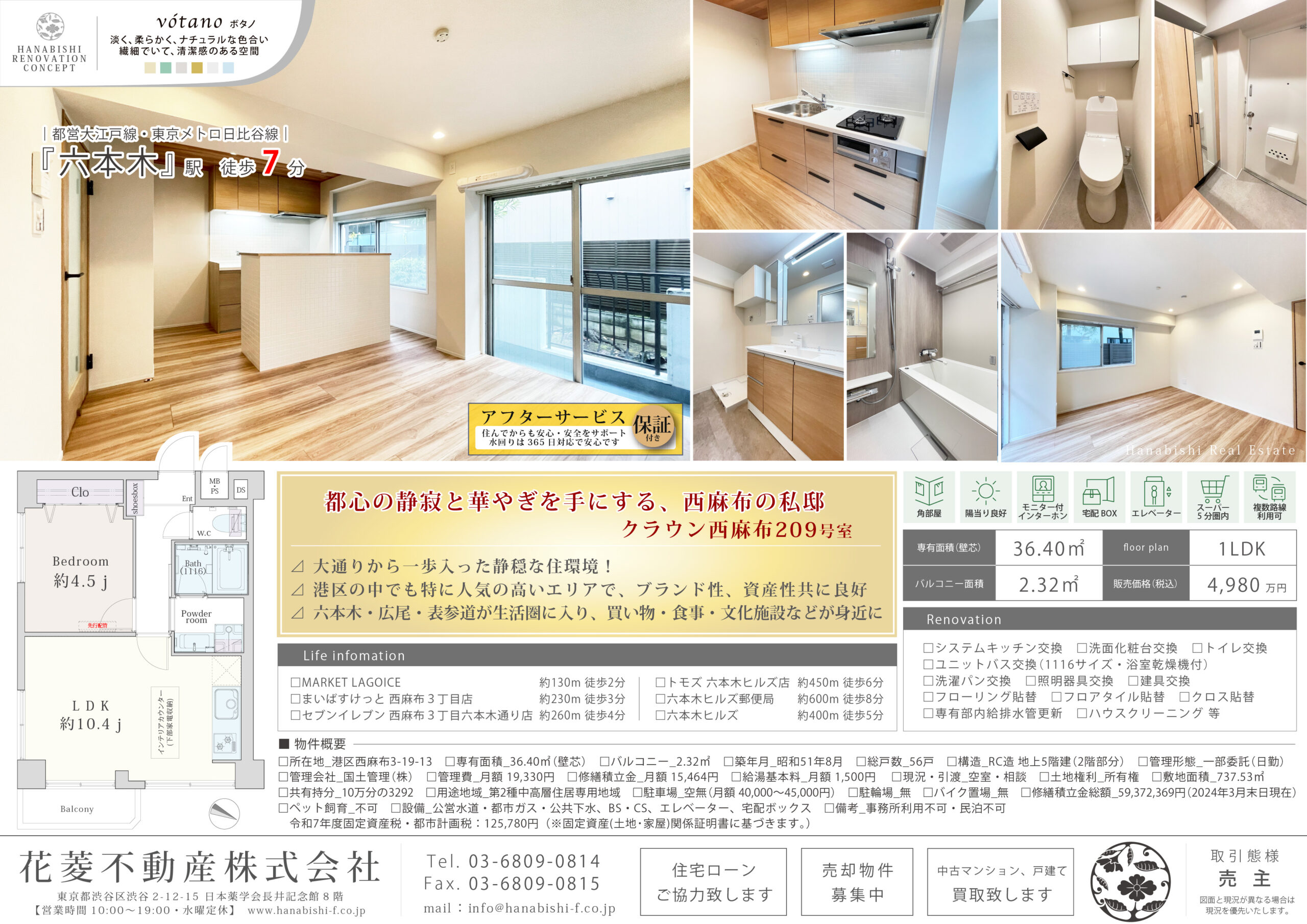都営大江戸線・東京メトロ日比谷線「六本木」駅 徒歩7分