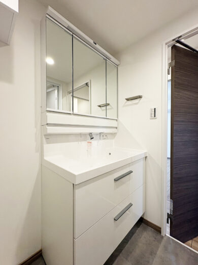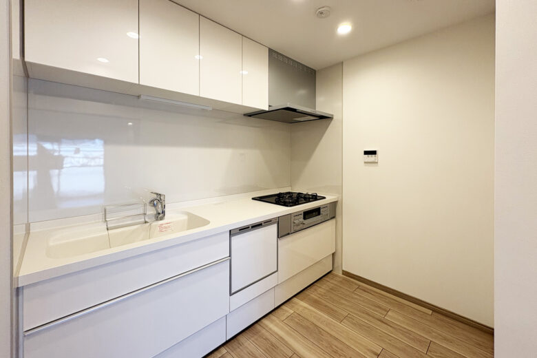 | リノベーション内容 | システムキッチン交換(食洗機付) / 洗面化粧台交換 / トイレ交換 / ユニットバス交換(1216サイズ・浴室乾燥機付) / 給湯器交換(追焚付) / 洗濯パン交換 / フローリング貼替 / フロアタイル貼替 / クロス貼替 / 照明器具交換 / 建具交換 / 専有部内給排水管更新 / ハウスクリーニング 等 |