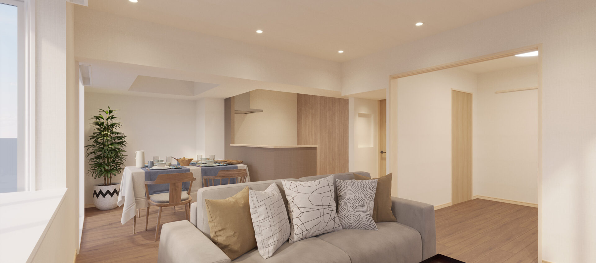 ニュートラルカラーの優雅さを纏った、上質で落ち着きのある内装