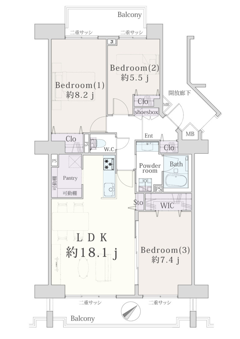 | 間取り(専有面積) | 3LDK+WIC+Pantry(83.94㎡) |