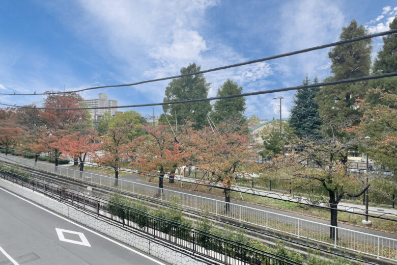 ◆ リビングから仙台堀川公園桜並木を一望できる桜ビューのお部屋