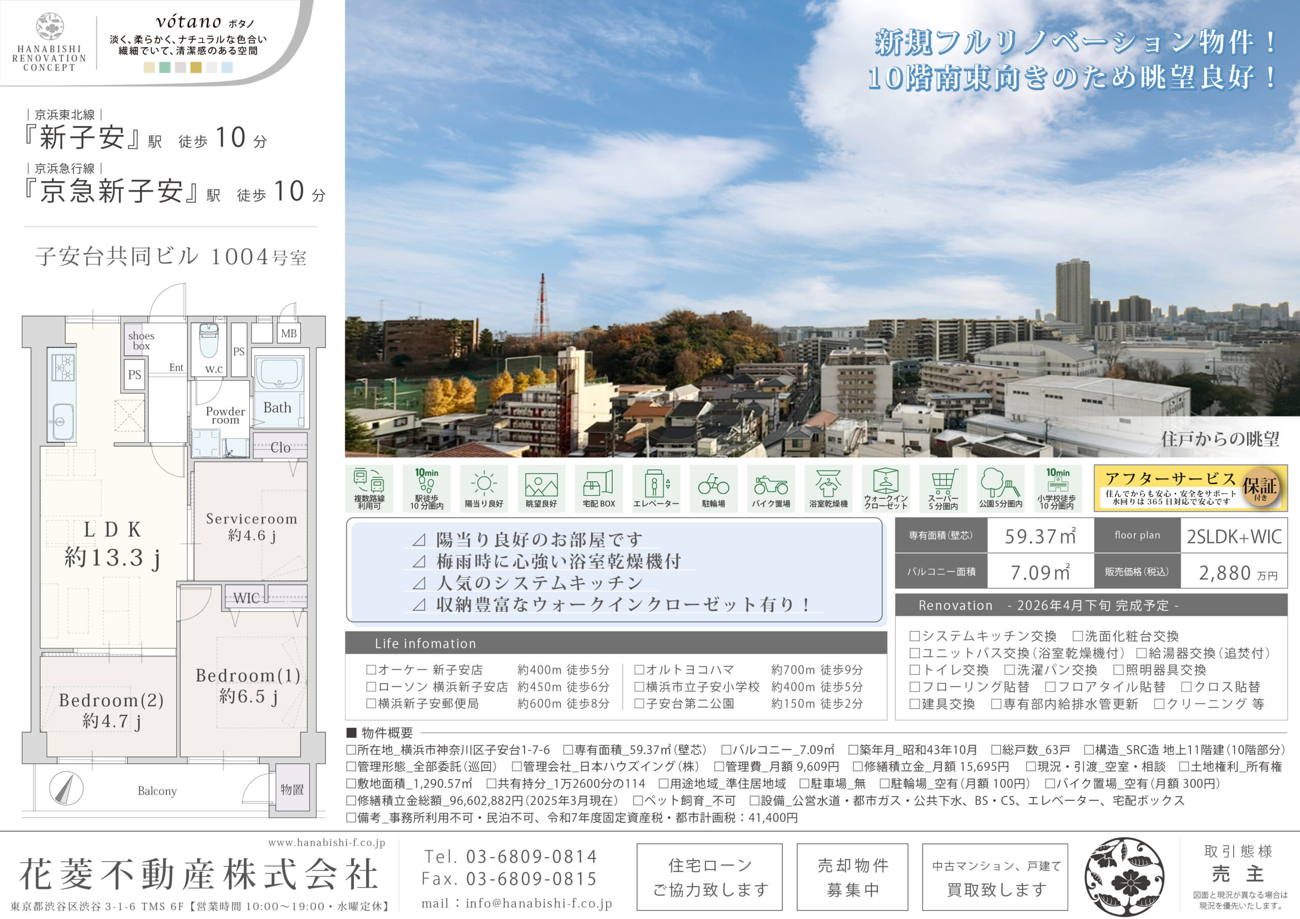 新規フルリノベーション物件! 10階南東向きのため眺望良好!