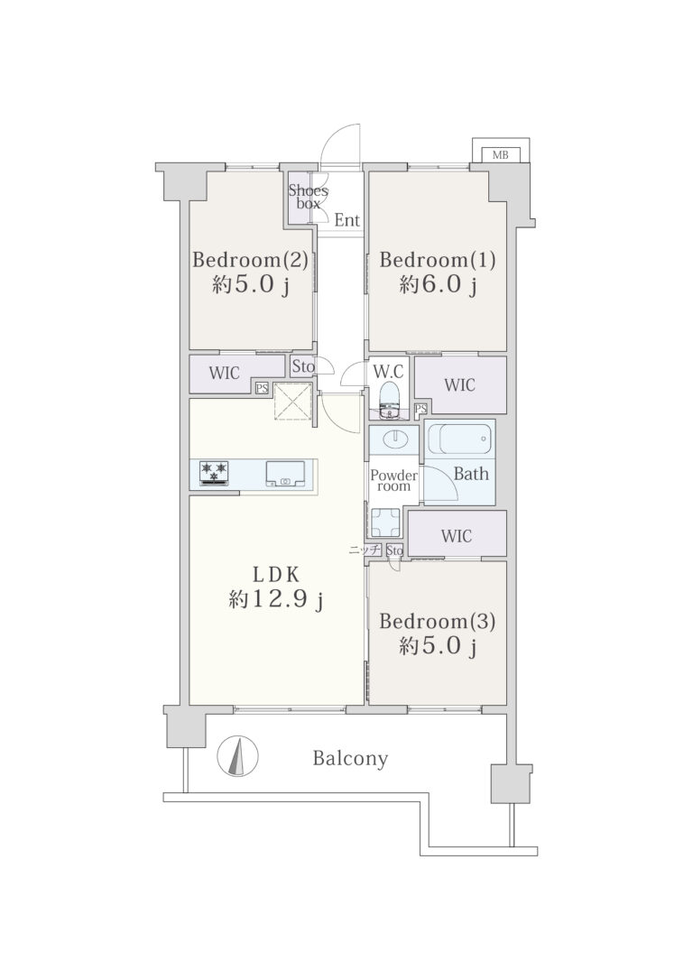 間取り(専有面積) 3LDK+3WIC(64.01㎡)