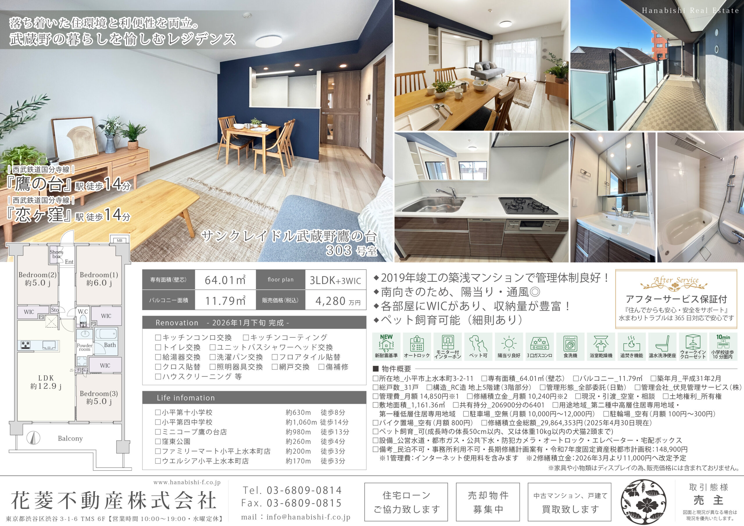 緑豊かな小平エリアの落ち着いた住環境。静かな街並みで子育てしやすく、生活利便施設も徒歩圏内にあります。家族の時間を大切にしながら、安心して暮らせるリフォーム物件です。