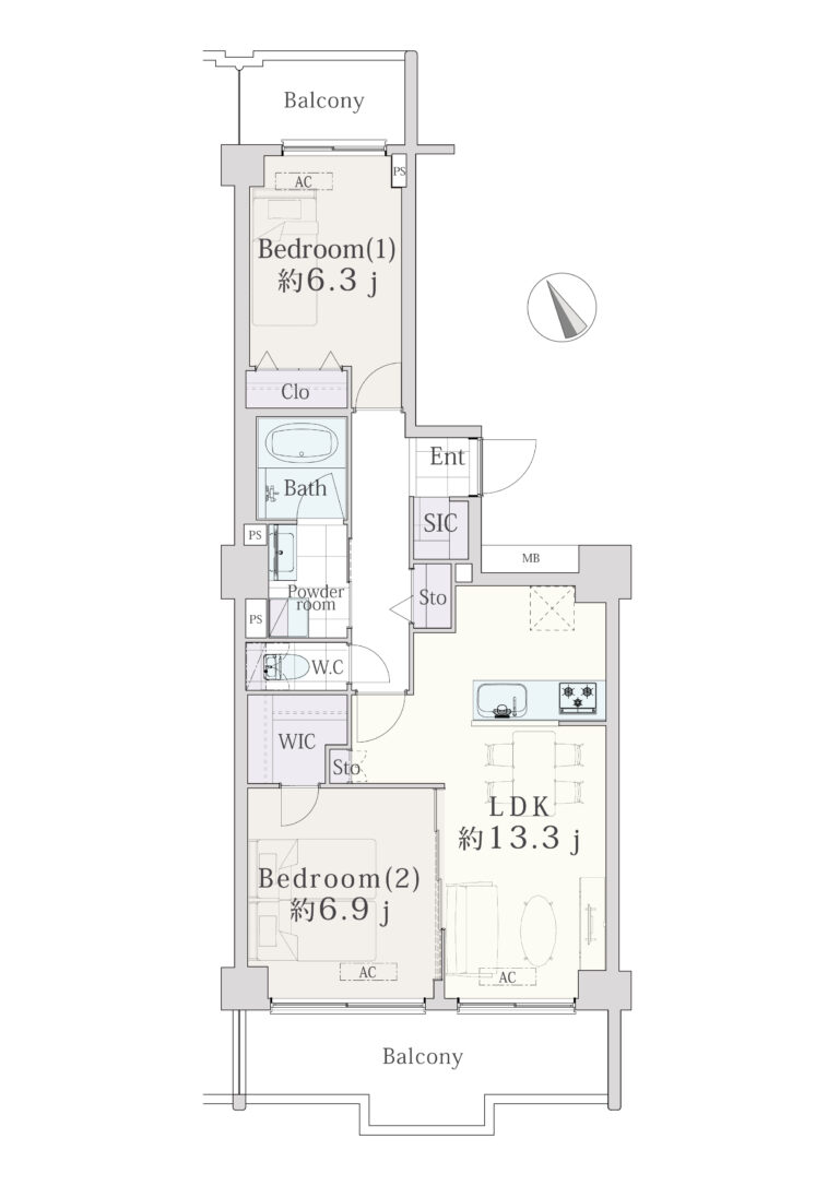 | 間取り(専有面積) | 2LDK+WIC+SIC(62.07㎡) |
