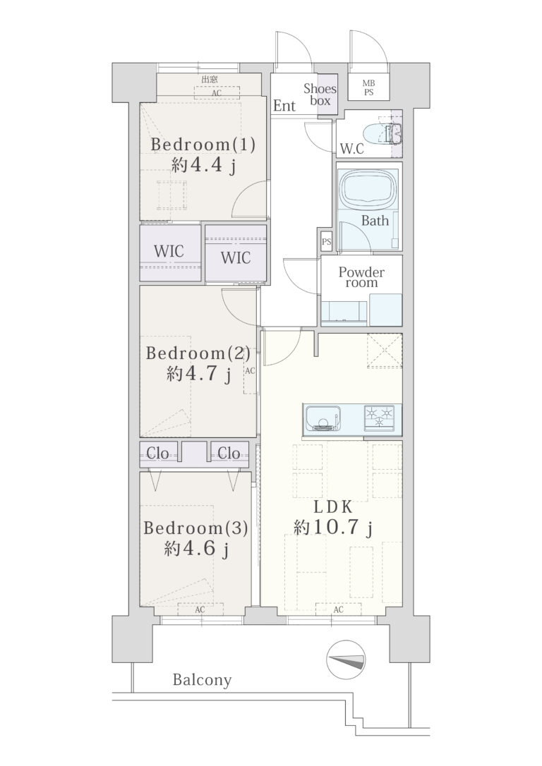 3LDK+2WIC(55.72㎡)