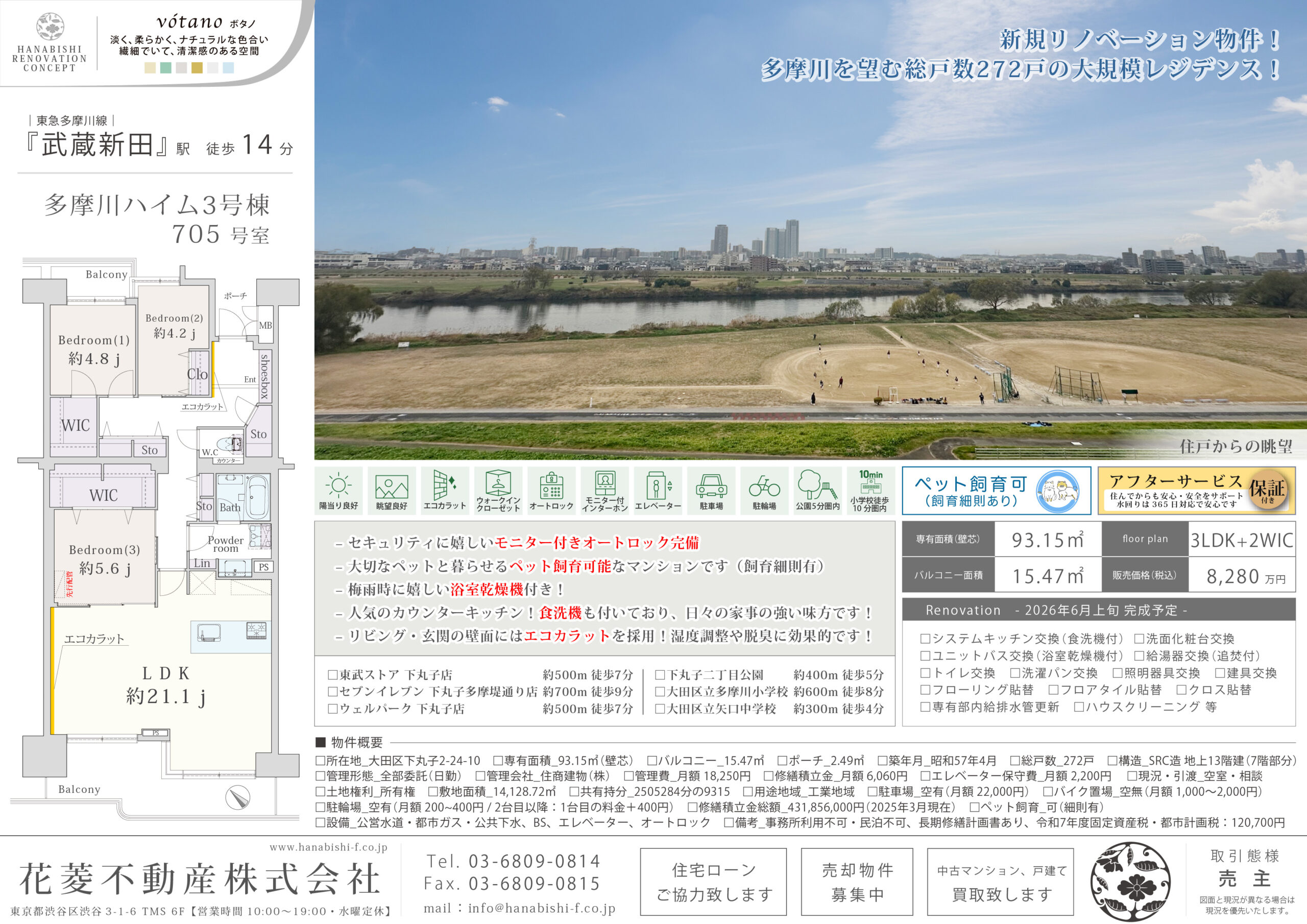 新規リノベーション物件!多摩川を望む総戸数272戸の大規模レジデンス!