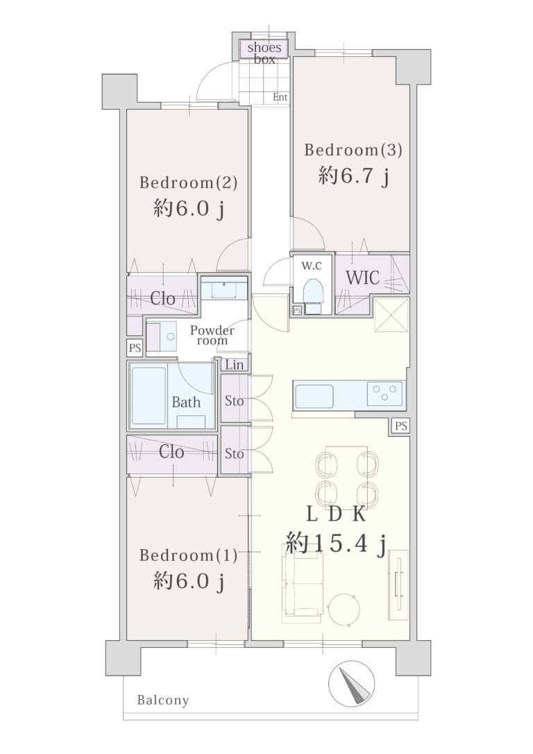 | 間取り(専有面積) | 3LDK+WIC(76.68㎡) |